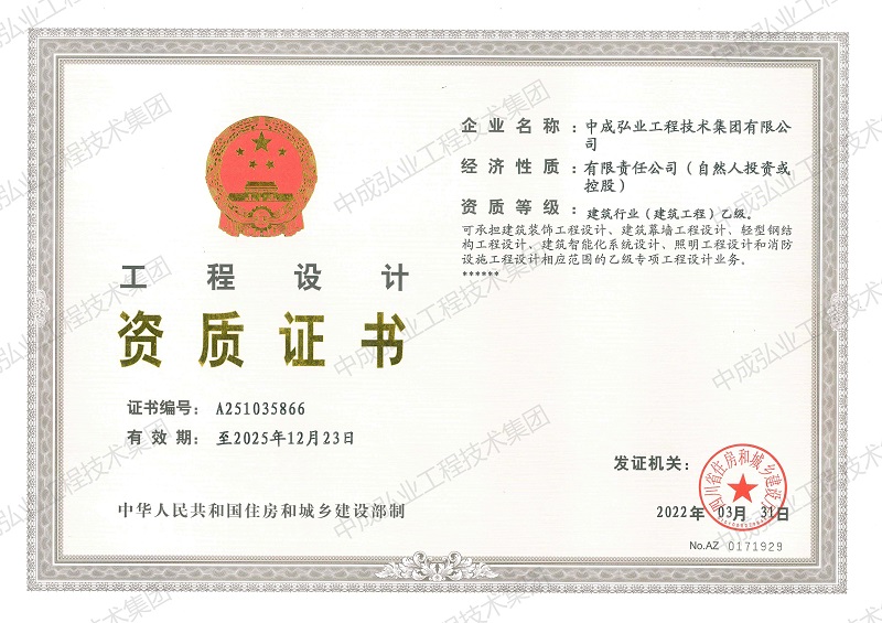 中成弘業工程技術集團成立于有著3000余年建城史,故有“錦官城”之稱的成都。公司于2014年05月15日在四川省工商行政管理局注冊登記,注冊地址為成都市高新區益州大道北段388號8棟8層818號,注冊資本為9800萬元整。我公司主要經營工程咨詢、工程管理服務、工程勘察設計、建筑工程、水利水電工程、公路工程、市政公用工程、電力工程、機電工程、建筑裝修裝飾工程、古建筑工程、消防設施工程、防水防腐保溫工程、建筑機電安裝工程、起重設備安裝工程、通信工程、公路路面工程、公路交通工程、公路路基工程、輸變電工程、橋梁工程、隧道工程、電子與智能化工程、城市及道路照明工程、地基基礎工程、鋼結構工程、建筑幕墻工程、水利水電機電安裝工程、水工金屬結構制作與安裝工程、航道工程、河湖整治工程、機場場道工程、礦山工程、...